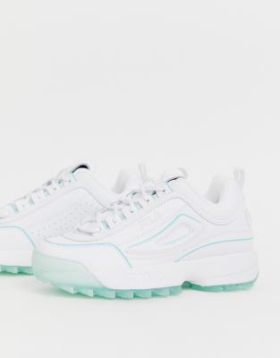 Fila Disruptor II Trainers in white with ice blue sole | ASOS