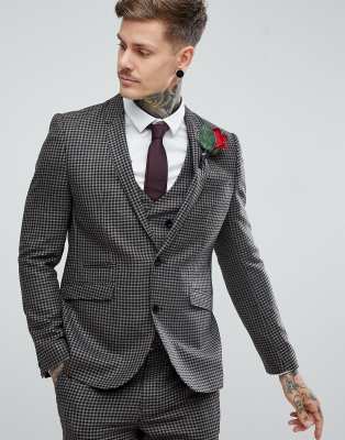 ASOS - Veste de costume de mariage slim 100% laine motif pied-de-poule - Mastic | ASOS