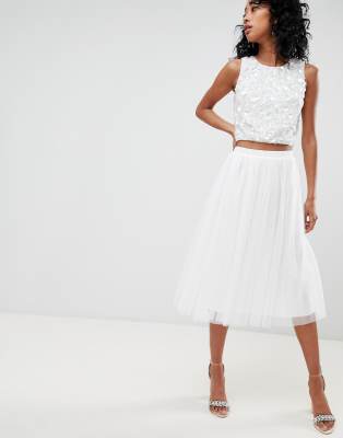 Lace \u0026 Beads - Jupe mi-longue en tulle - Blanc | ASOS